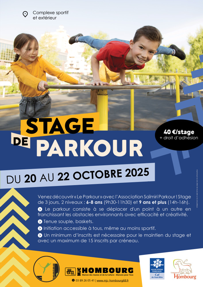 Nous vous proposons un stage pour découvrir « Le Parkour » avec l’Association Saïmiri Parkour ! Le parkour consiste à se déplacer d’un point à un autre en franchissant les obstacles environnants de manière efficace et créative : courir, sauter, grimper, ramper, rouler… Le traceur doit apprendre à voir son environnement d’une manière différente, en utilisant murs, barrières, et autres obstacles comme des opportunités de mouvement plutôt que des barrières.